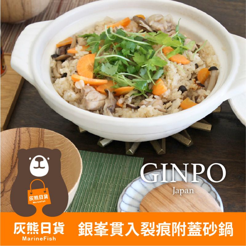<灰熊日貨>日本製 萬古燒 銀峯 墨貫入耐熱裂痕砂鍋 8號 附蓋 GINPO 砂鍋 深砂鍋 耐熱砂鍋