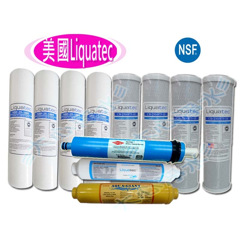 ≡大心淨水≡LIQUATEC 10英吋一年份濾心11支裝(PP5U/CTO/CTO/RO膜/小T/麥飯石) NSF認證