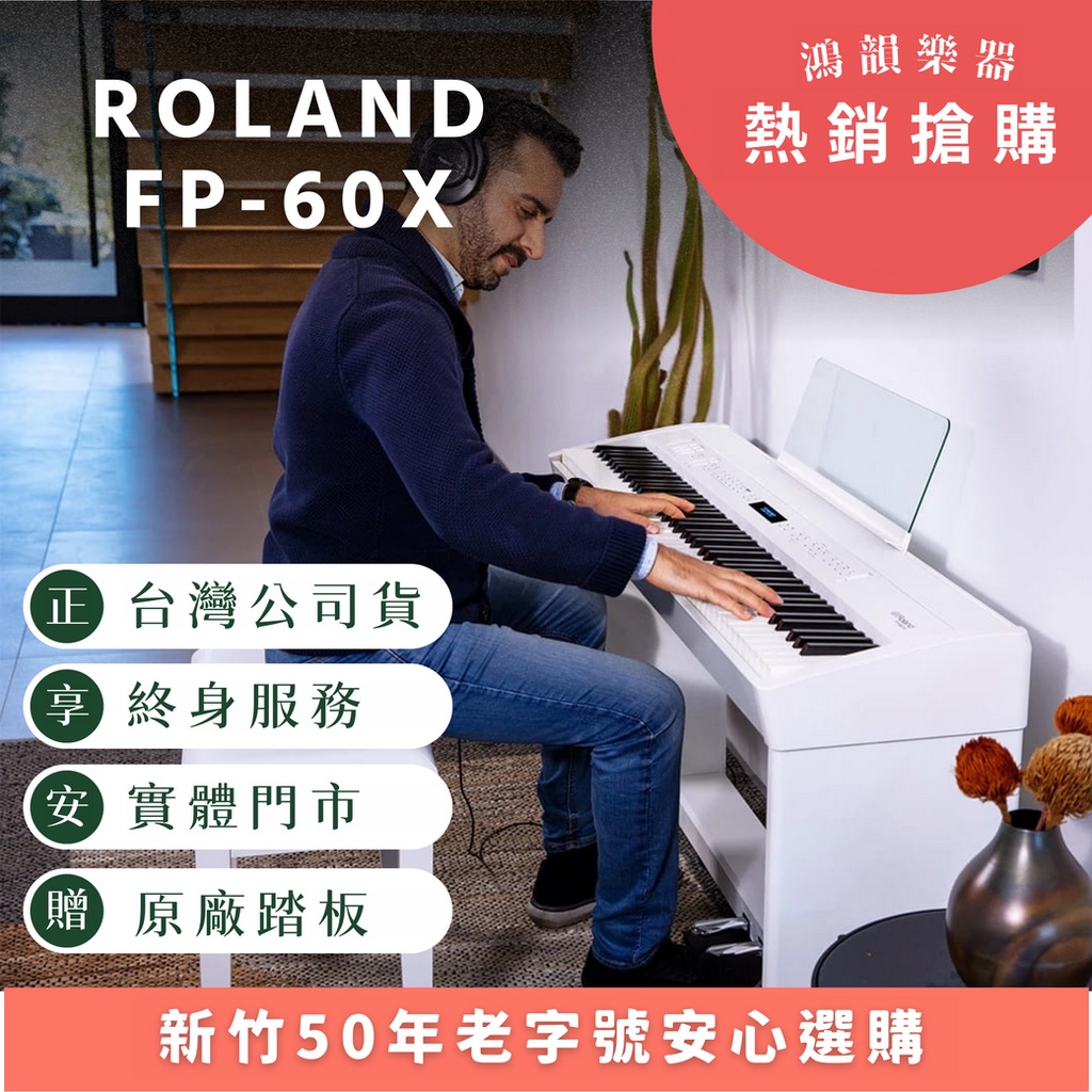 【12期0利率🎁全配贈耳機】Roland FP60X 數位鋼琴《鴻韻樂器》原廠保固2年 FP-60X