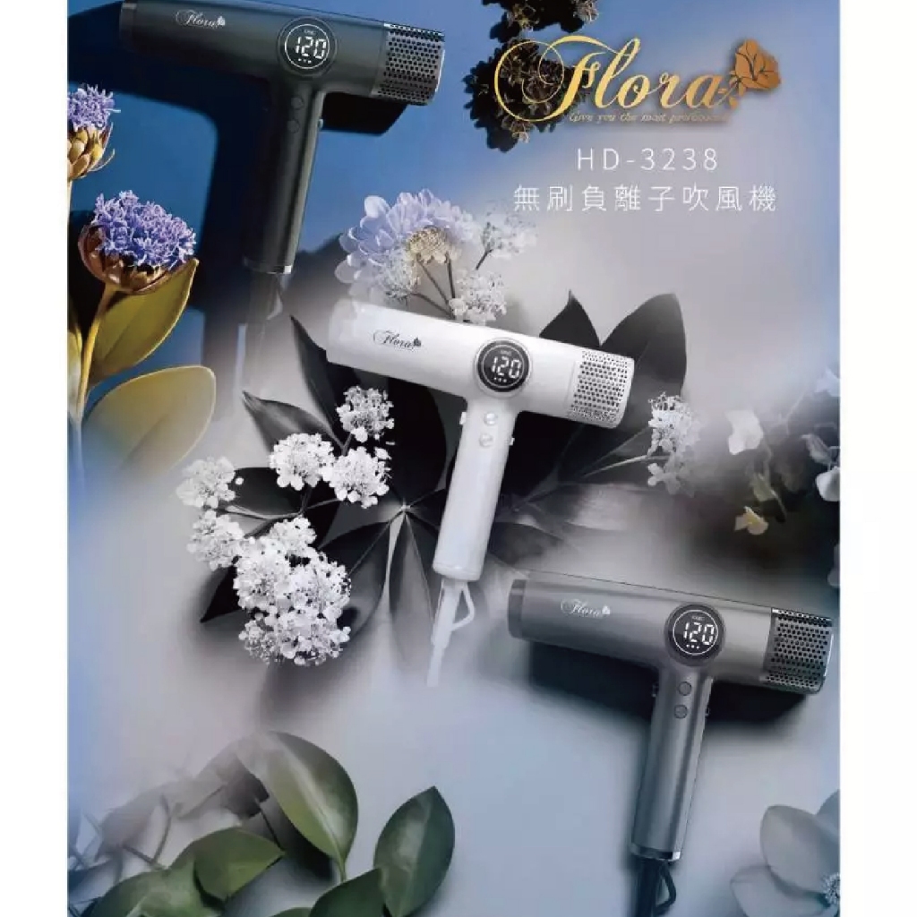 ┃𝗳𝗼:𝗵𝗮𝗶𝗿┃Flora液晶無刷吹風機3238 HD-3238 高速負離子無刷吹風機 強勁風力 速乾護髮 設計師推薦