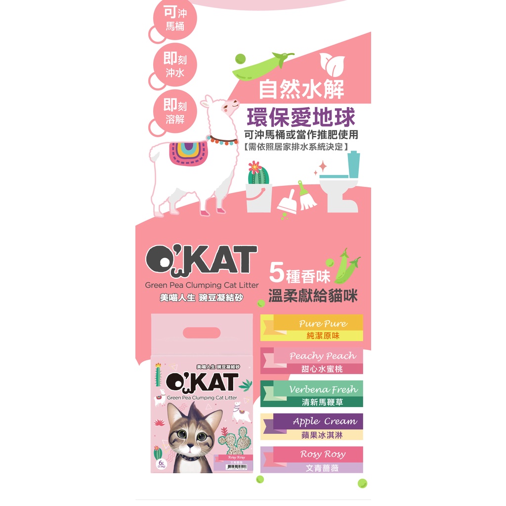 ★寵瞎咪-O'KAT【美喵人生】新包裝!2mm條狀砂 豌豆凝結砂 豆腐砂 貓砂 6L 五種味道