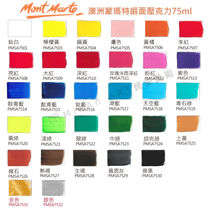 ★民安美術 澳洲 Mont Marte 蒙瑪特 蒙馬特 壓克力顏料 75ml 丙烯 緞面壓克力 31色 乾後防水 @70