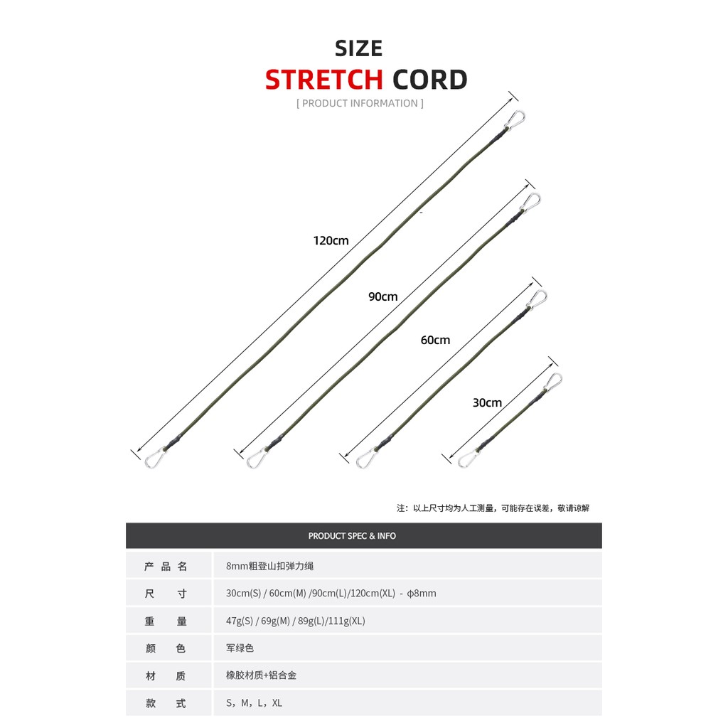 ★露露營★戶外露營登山彈力繩鬆緊帶帳篷掛繩8mm野營晾衣繩行李捆綁繩打包帶外登山扣彈力繩鬆緊帶帳篷掛繩