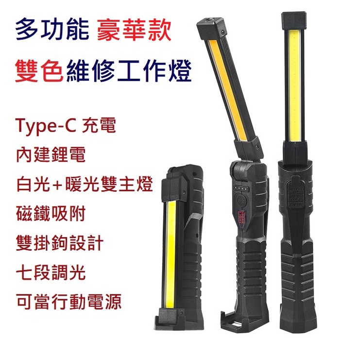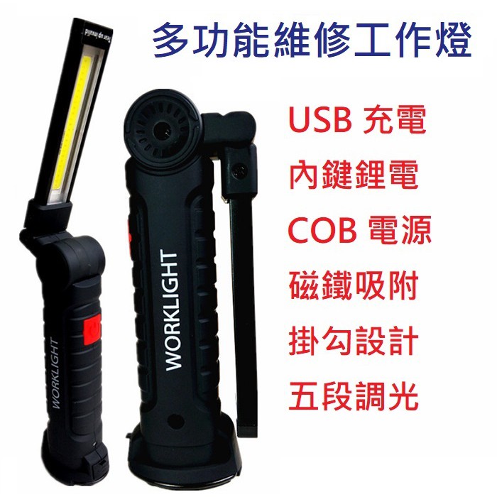 ☆光店☆ LED COB 磁吸工作燈 內置鋰電 磁鐵工作燈 紅光警示 露營燈 手電筒 USB充電 可吊掛 汽車維修燈