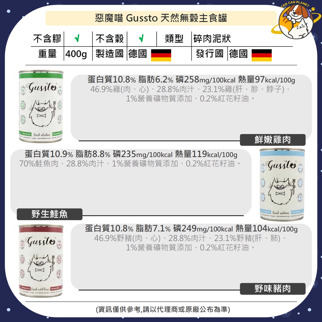 ♡罐罐星球♡惡魔喵 Gussto 天然無穀主食罐 惡魔 天然 無穀 德國 主食罐 貓罐 貓 罐 400g