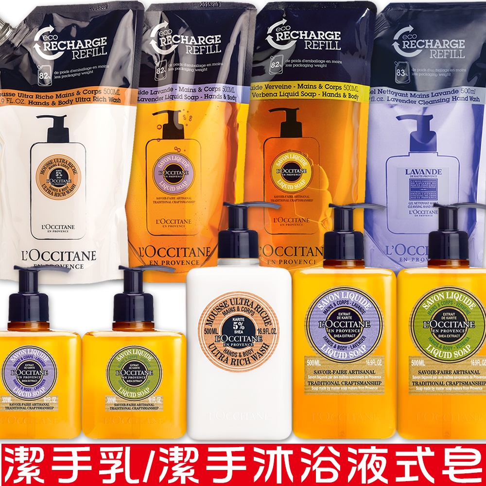 ♡A+美人♡ 歐舒丹 乳油木薰衣草/馬鞭草潔手沐浴液式皂補充瓶500ml & 乳油木保濕潔手沐浴乳補充包500ml