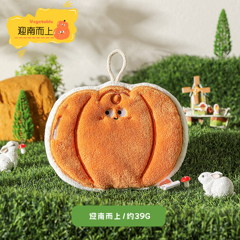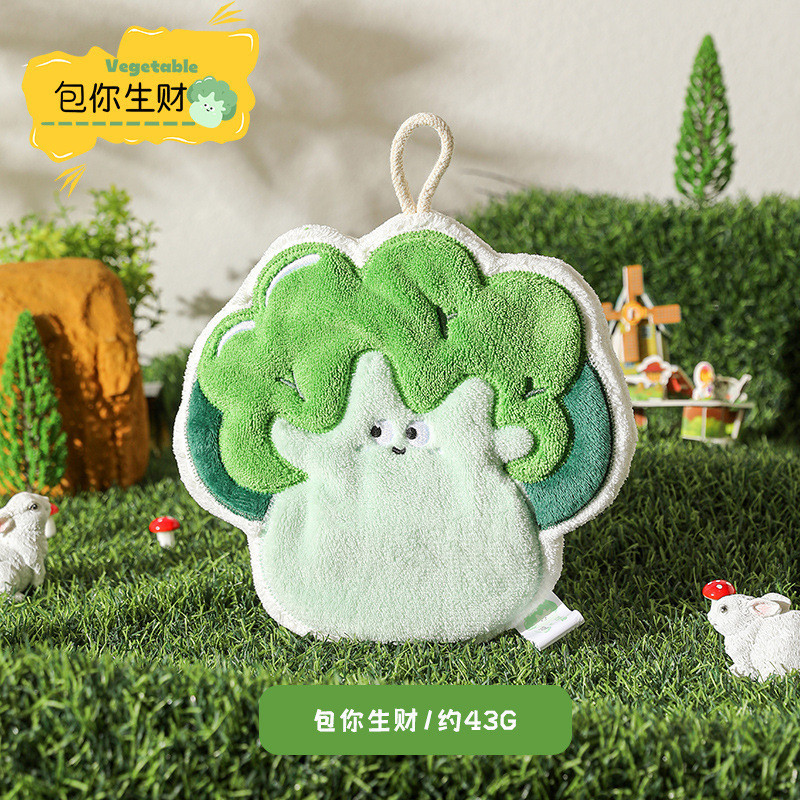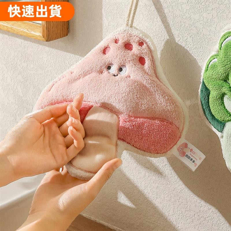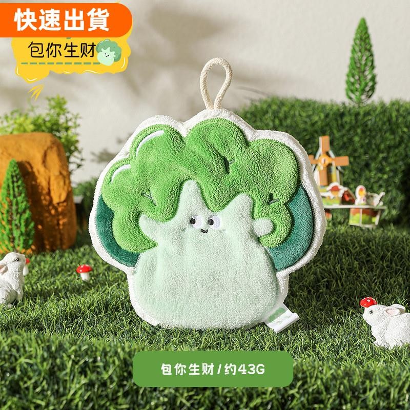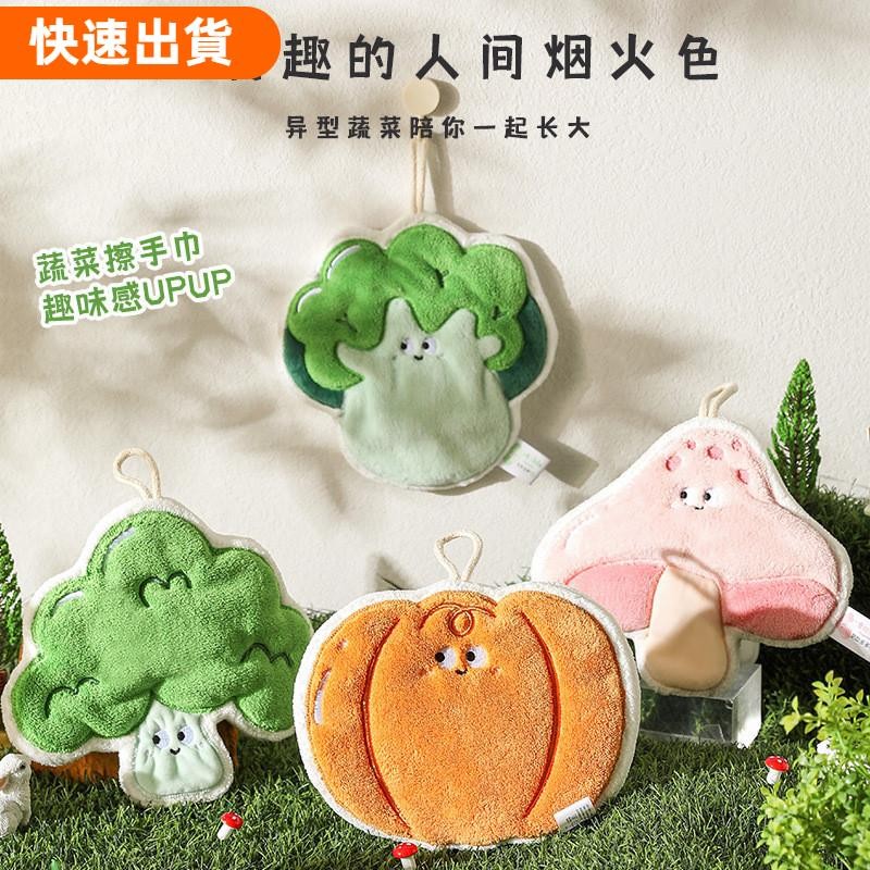 ⚡優選田園蔬菜珊瑚絨擦手巾衛生間廚房擦手帕可掛式吸水速乾可愛不掉毛毛巾