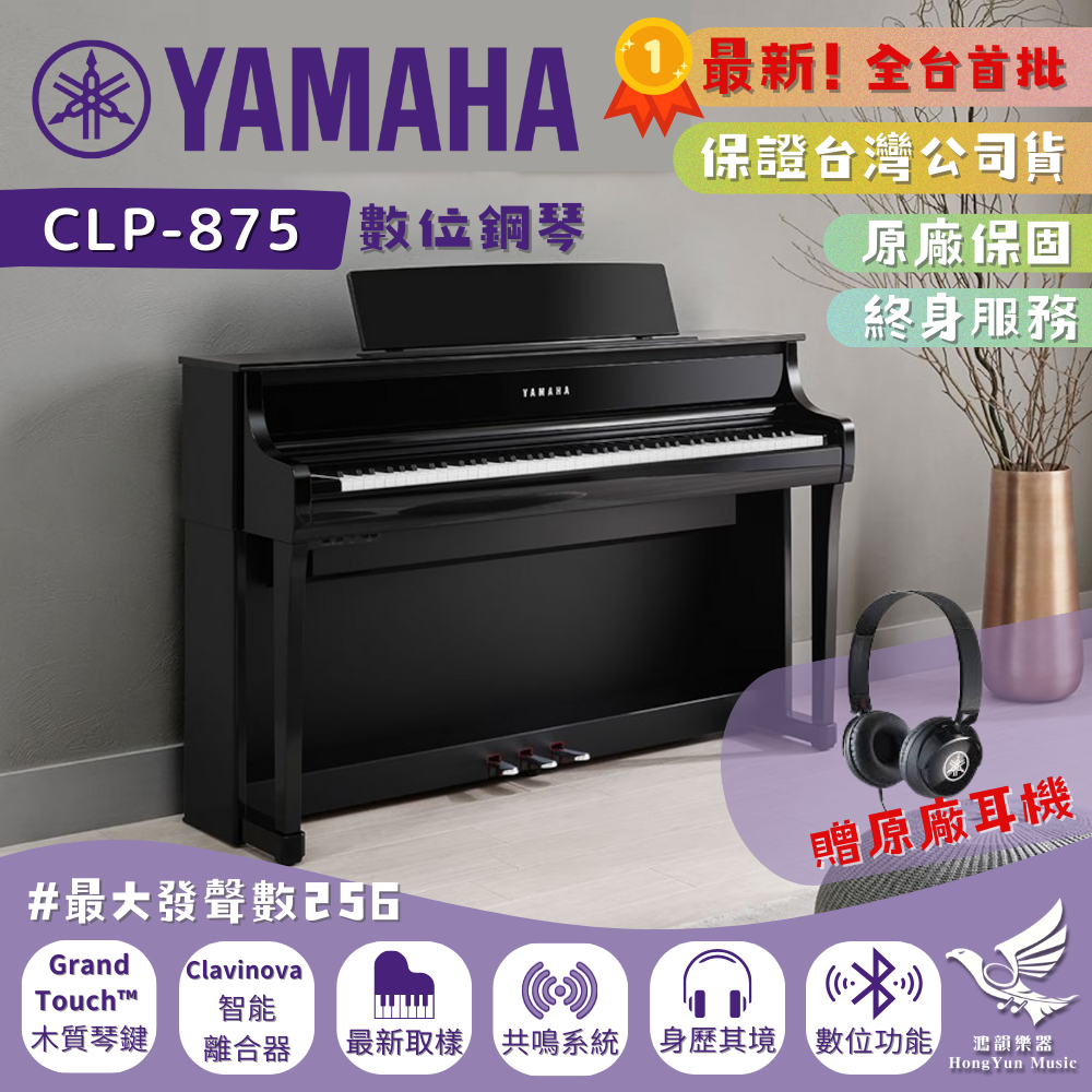 【分期0利率🎁贈原廠耳機】YAMAHA CLP875 數位鋼琴《鴻韻樂器》原廠保固15個月 CLP-875