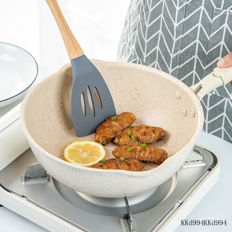 ✅台灣出貨 炒鍋 不沾鍋 煎炒鍋 不沾鍋炒鍋北歐麥飯石傢用小平底鍋煎炒兩用燃氣竈電磁爐炒菜鍋