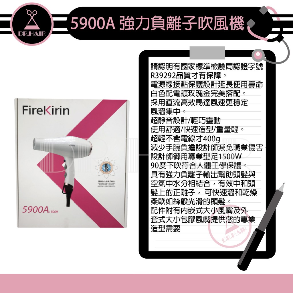 ✍DrHair✍造型必備 Firekirin 5900A 最輕負離子吹風機 1500W 高熱能負離子 玫瑰金 風大