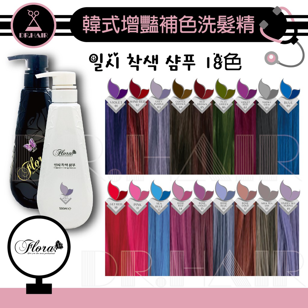 ✍DrHair✍造型染髮專業品牌FLORA 韓式豔彩補色洗髮精 奶茶灰 紫灰 補色洗髮精 增豔洗 增艷洗髮膜 護色