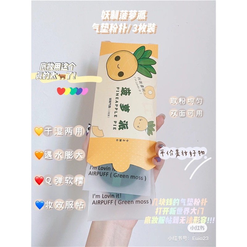 ✨大量現貨中✨特價!妖制菠蘿派 蛋黃派 氣墊粉撲 3枚裝!雙面粉撲 干濕兩用不吃粉 平價學生黨