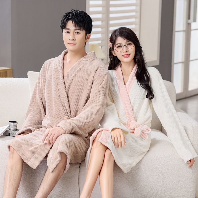✨臺灣發貨✨新款秋冬浴袍長袖不掉毛比純棉吸水速幹男女情侶浴衣秋冬加絨浴巾成人 9YS3