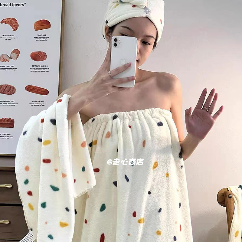 ✨ins風 浴巾女2024新款珊瑚絨加厚毛巾可穿式洗澡裹巾吸水速干浴裙干發帽