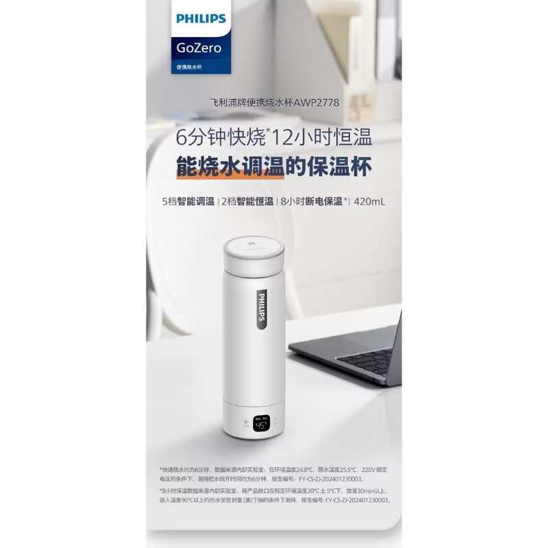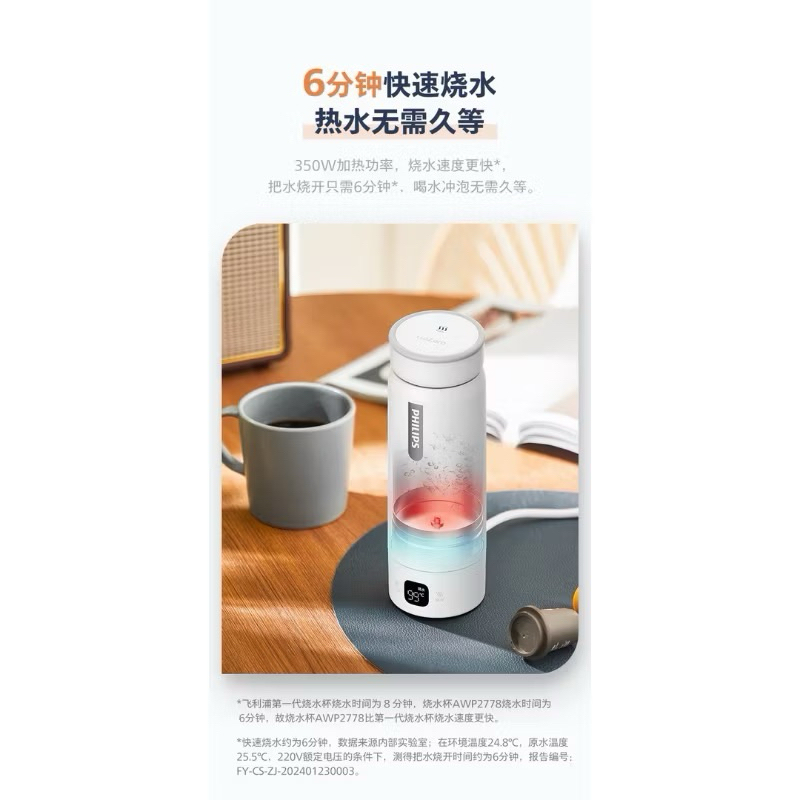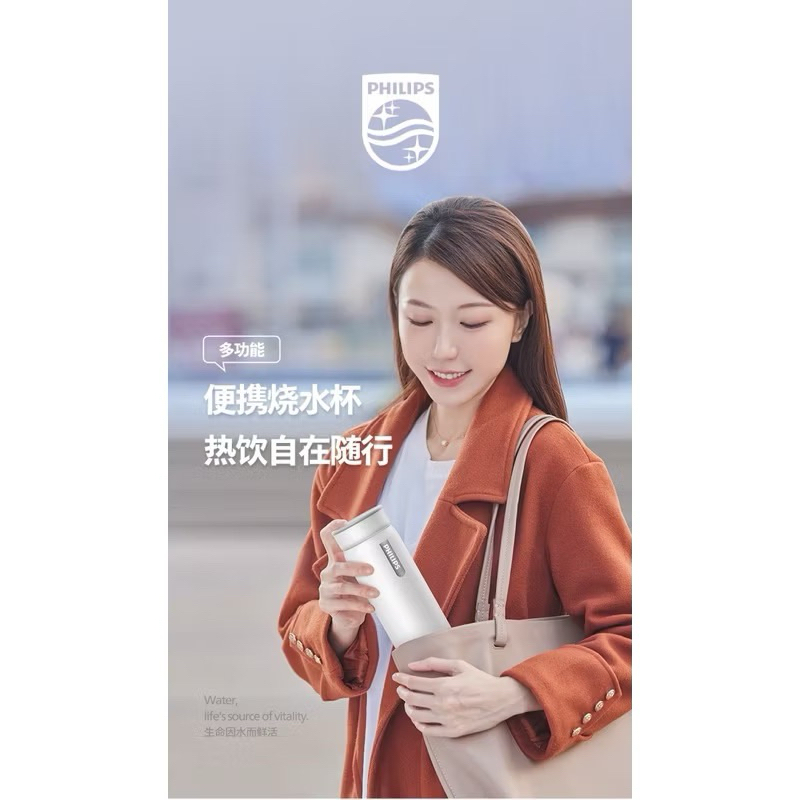 ✨💫 飛利浦電熱水杯旅行燒水壺小型便攜式電煮杯辦公室自動恆溫養生杯