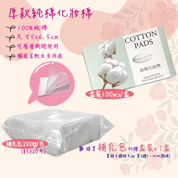 厚款天然純棉化妝棉🔥買1送1🔥清潔 保濕 卸妝 敷臉化妝棉 卸指甲油 (買補充包送盒裝)