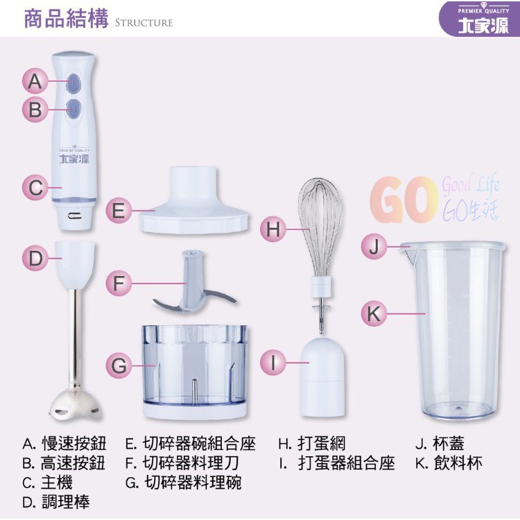 〈GO生活〉大家源料理達人全配料理手持式攪拌棒TCY-6706