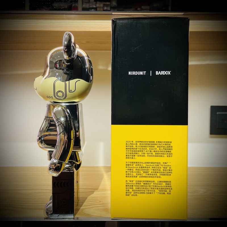 《國外限定|三方聯名》BE@RBRICK X NERDUNIT X BARDOX 400% 電鍍柴犬