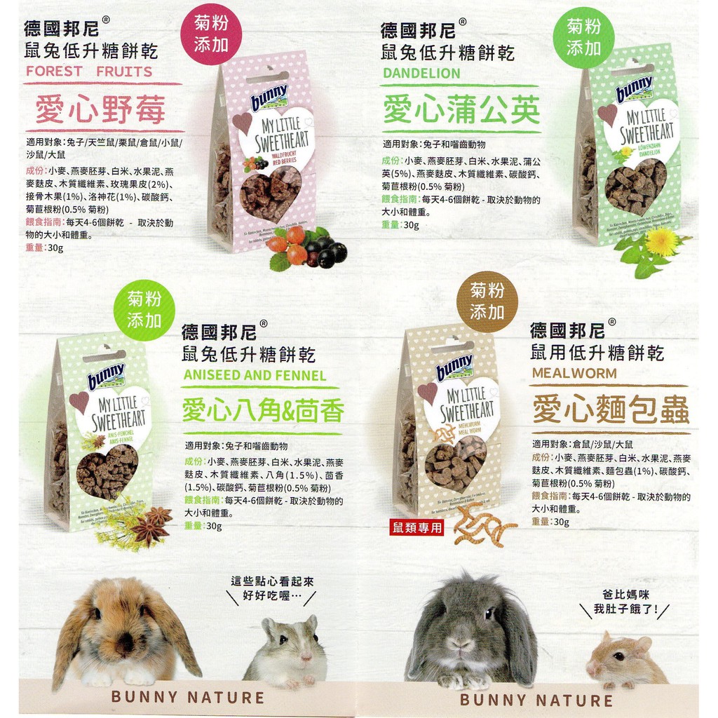 《富兔康》♥德國邦尼Bunny鼠兔低升糖餅乾--愛心野莓/愛心蒲公英/水果/蘋果/接骨木莓/甜菜根