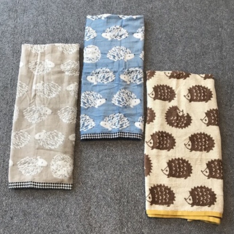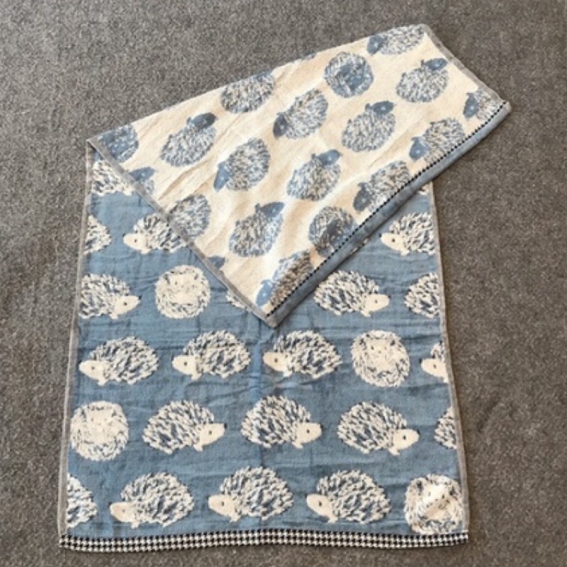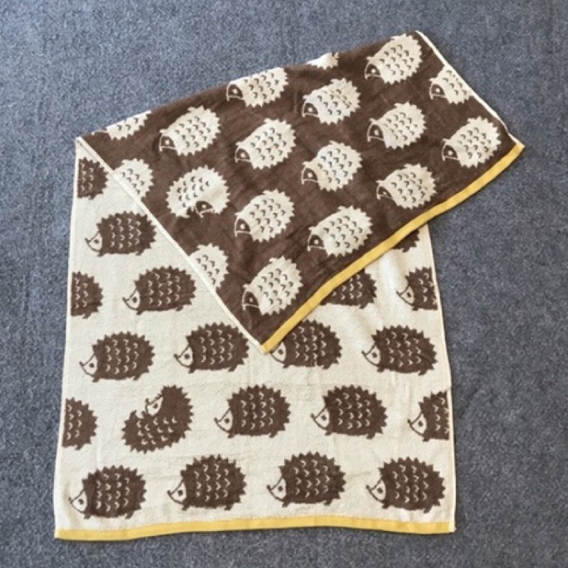 《小刺蝟》色織浴巾。長寬約60x120。 手感柔軟舒適。純棉吸水。沐浴擦拭推薦尺寸。