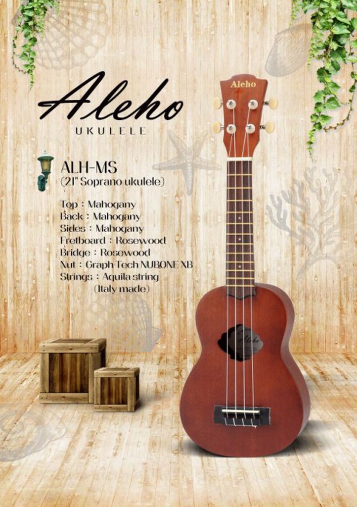 《小山烏克麗麗》ALEHO:ALH-MS 21" 貝殼造型響孔 烏克麗麗 桃花心木 烏克 新手推薦 美國大牌