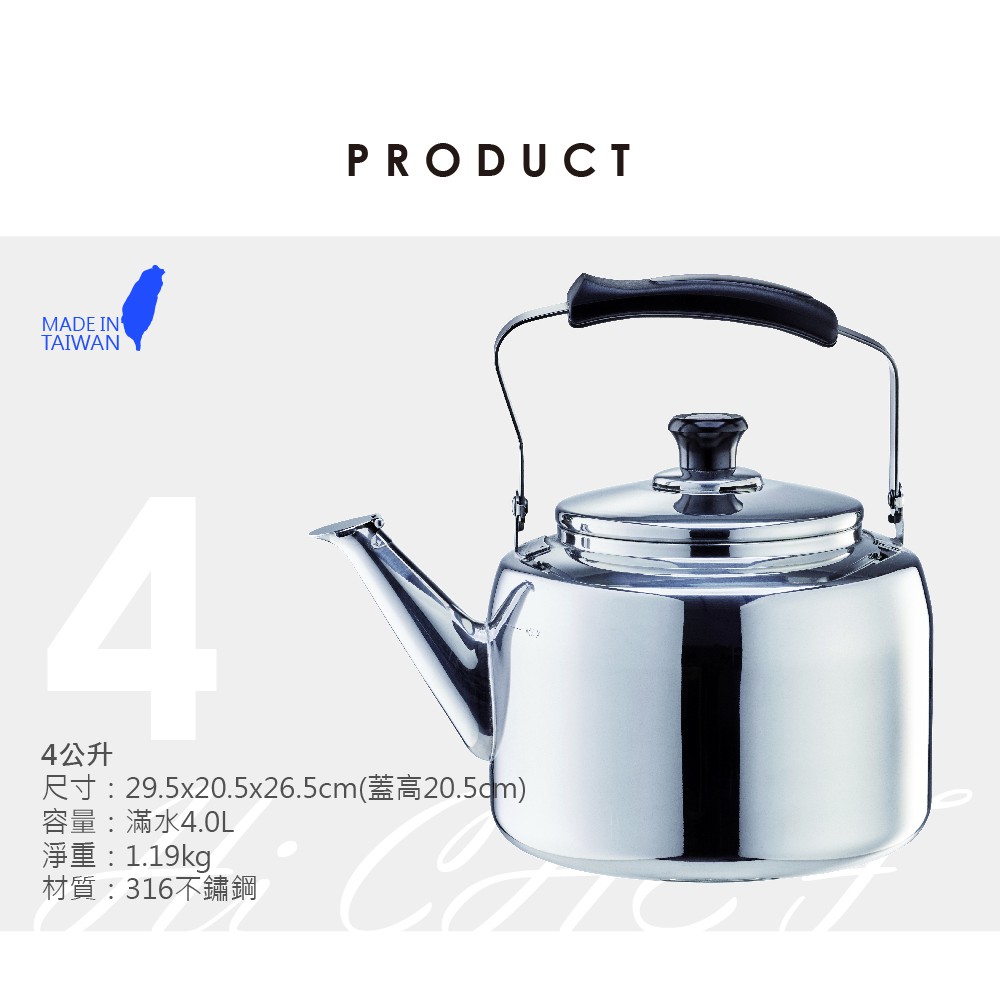 《掌廚HiCHEF》316不鏽鋼 4.0L笛音壺(煮水茶壺)