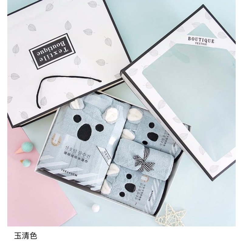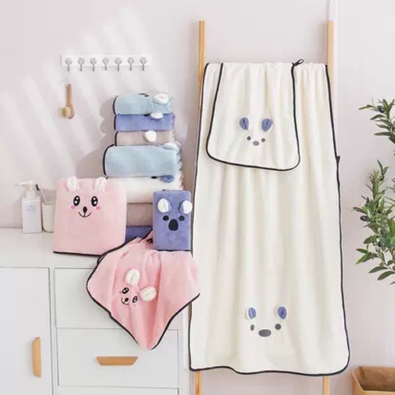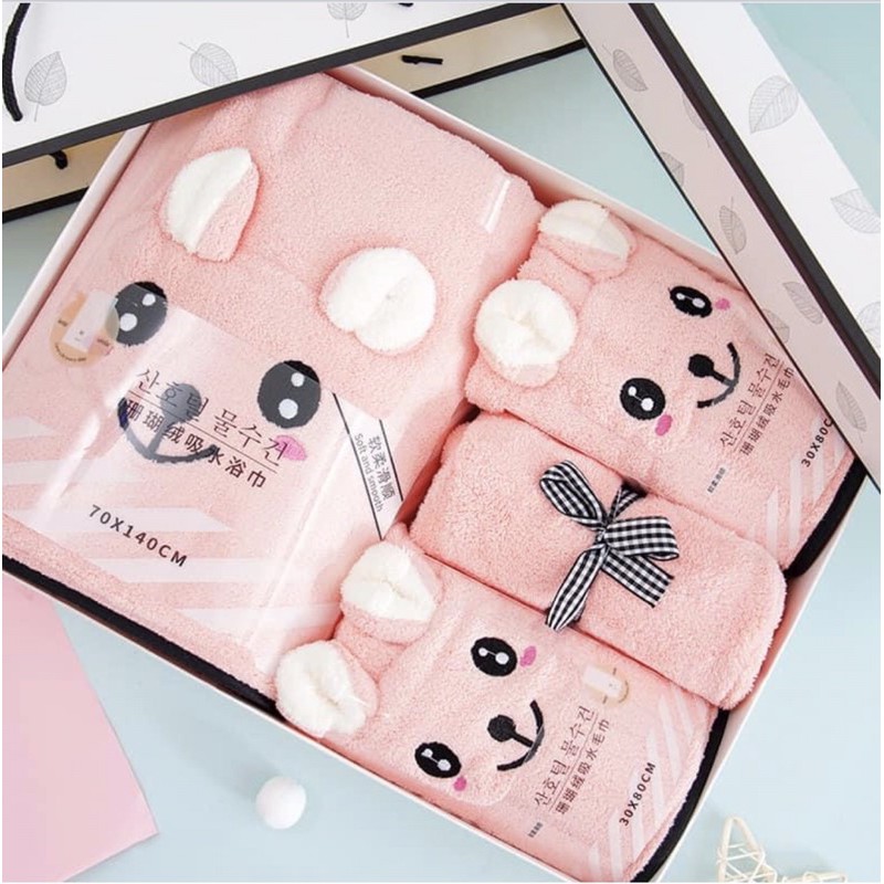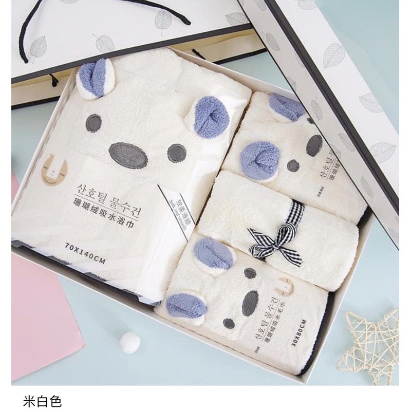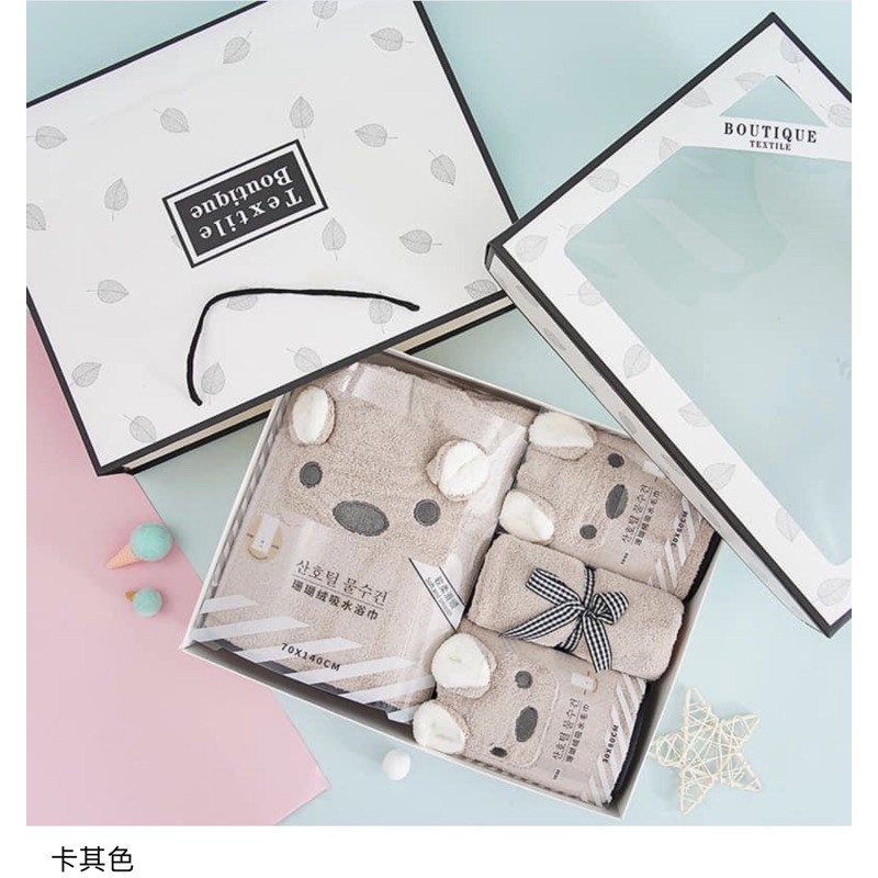 《瑪卡萊》雲朵般柔軟細膩可愛立體耳朵浴巾毛巾幹發帽套裝禮盒柔軟吸水