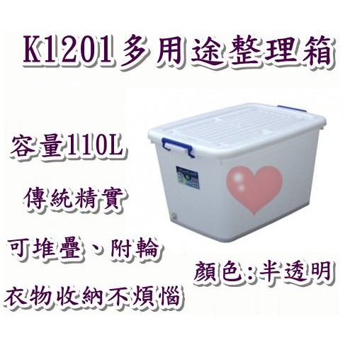 《用心生活館》台灣製造 110L 多用途整理箱尺寸 74*51.5*42cm 滑輪掀蓋式整理箱 K1201
