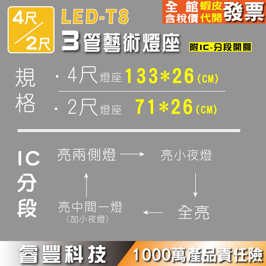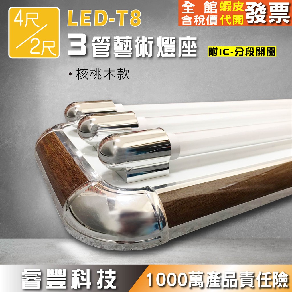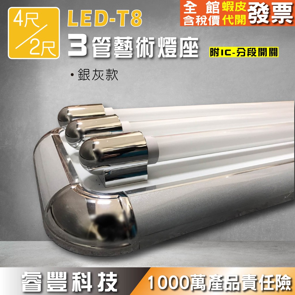 《睿豐科技》美術燈座LED-T8/2呎/4呎3管/三管/3燈藝術燈座IC分段開關核木/銀灰色