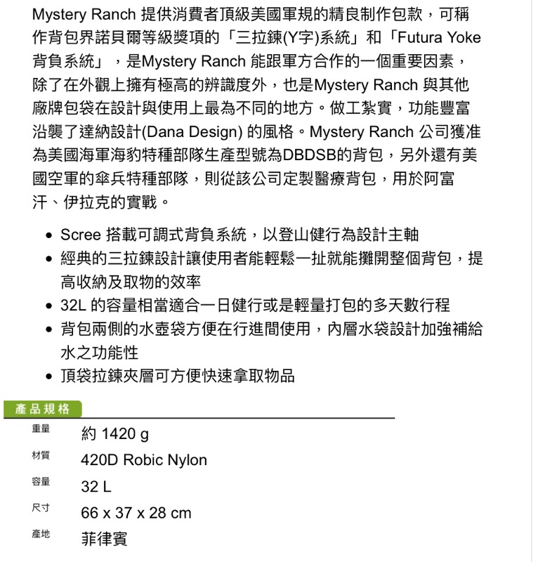 《租心晴》神秘農場登山背包mystery ranch scree 32L