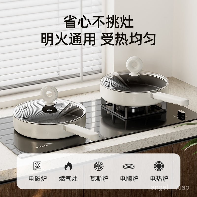 《闆娘爆殺🚀》有鈦無塗層平底炒鍋廚房兩用煎炒鍋不粘鍋炒菜鍋電磁爐燃氣竈通用 A14D