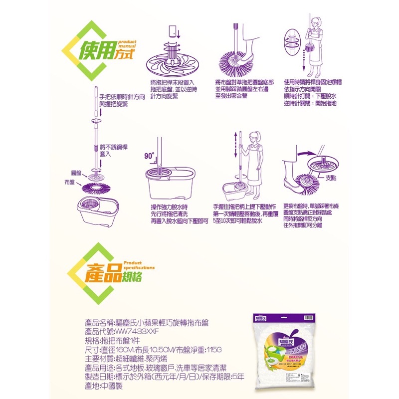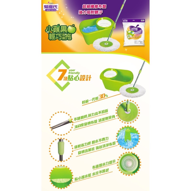 《附發票》【驅塵氏】小蘋果輕巧旋轉拖布盤(1布)