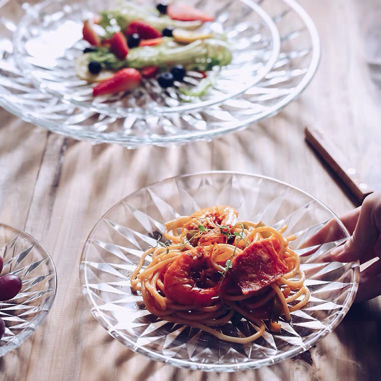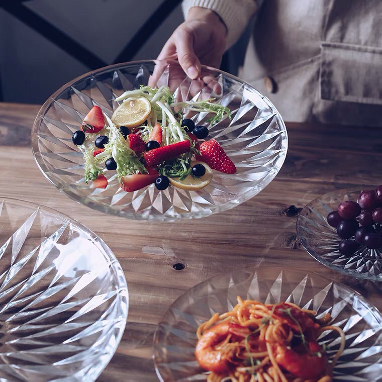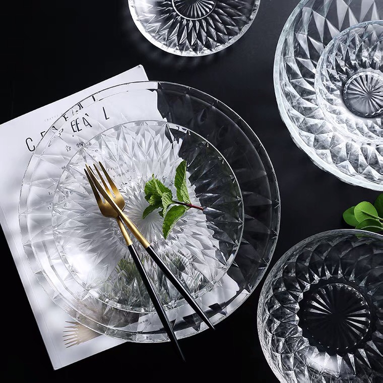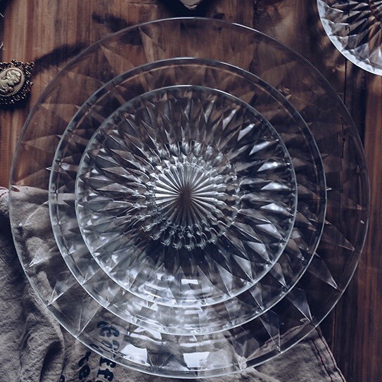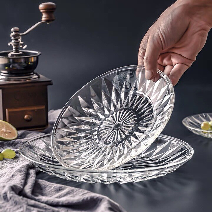 《附發票》玻璃冰花盤 鑽石紋盤 太陽盤 冷盤 沙拉盤 水果盤 大/中/小 簡約果盤 家用/商用