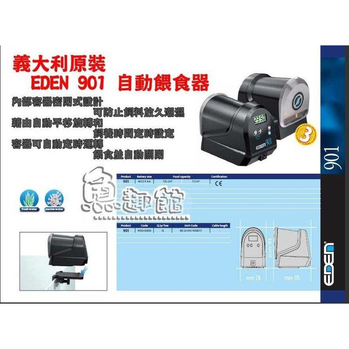 《魚趣館》F-E901義大利EDEN伊登自動餵食器 餵食機 變壓器