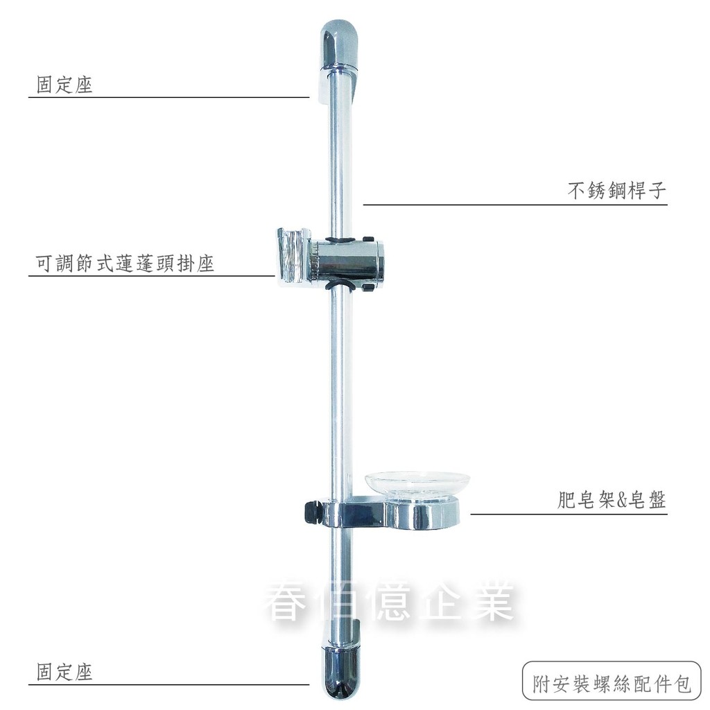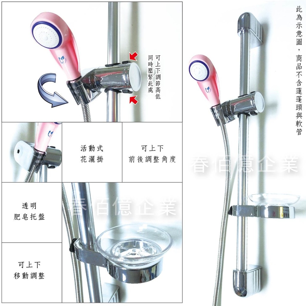 《Motely魔特萊》蓮蓬頭不鏽鋼升降滑桿收納掛架(銀) 淋浴∥花灑掛座∥皂盤∥沖澡高低角度調整
