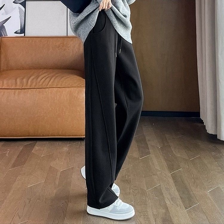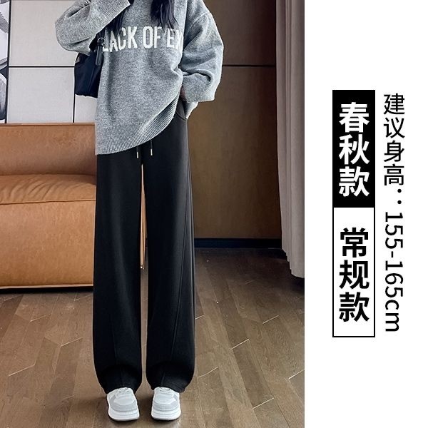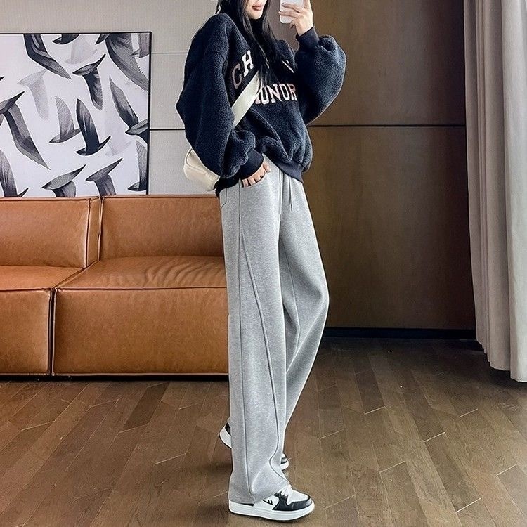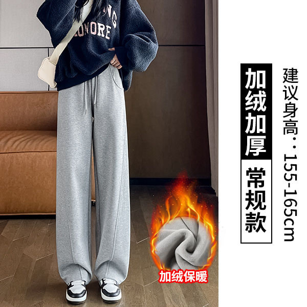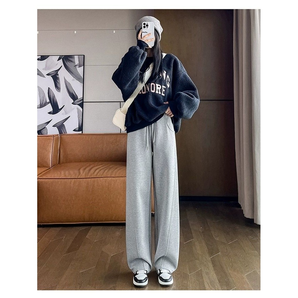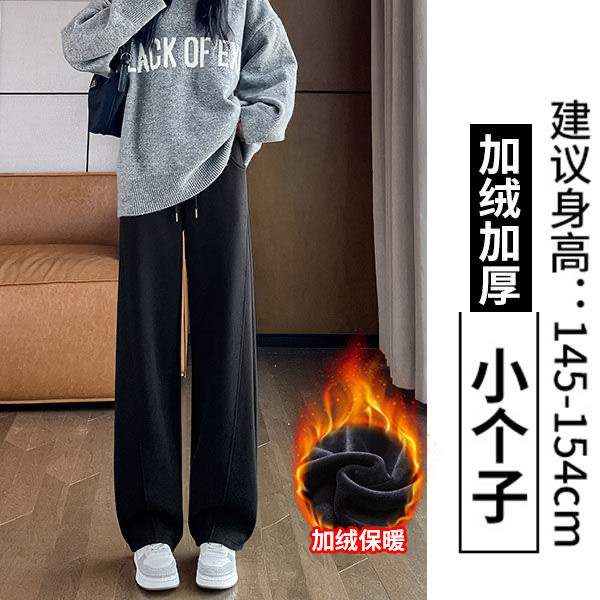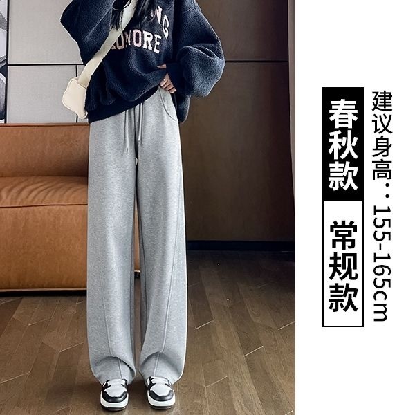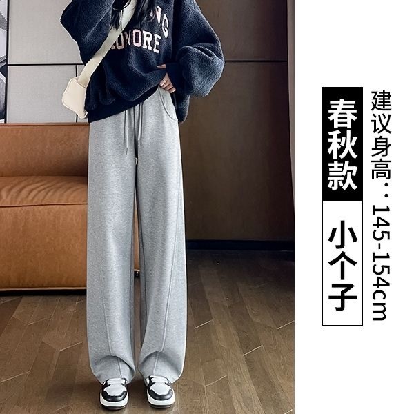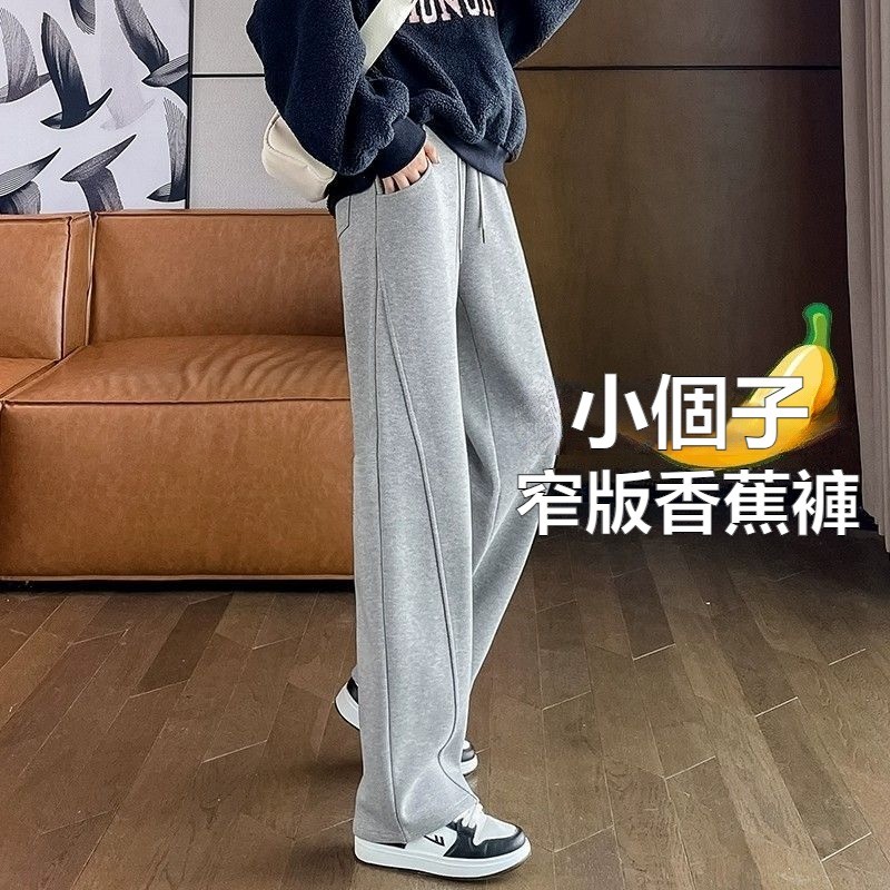 「小隻女」窄版闊腿褲 2024新款 秋冬季 美式長褲 高腰運動褲 灰色運動褲 加絨衛褲 小個子 香蕉褲 純色長褲 直筒褲