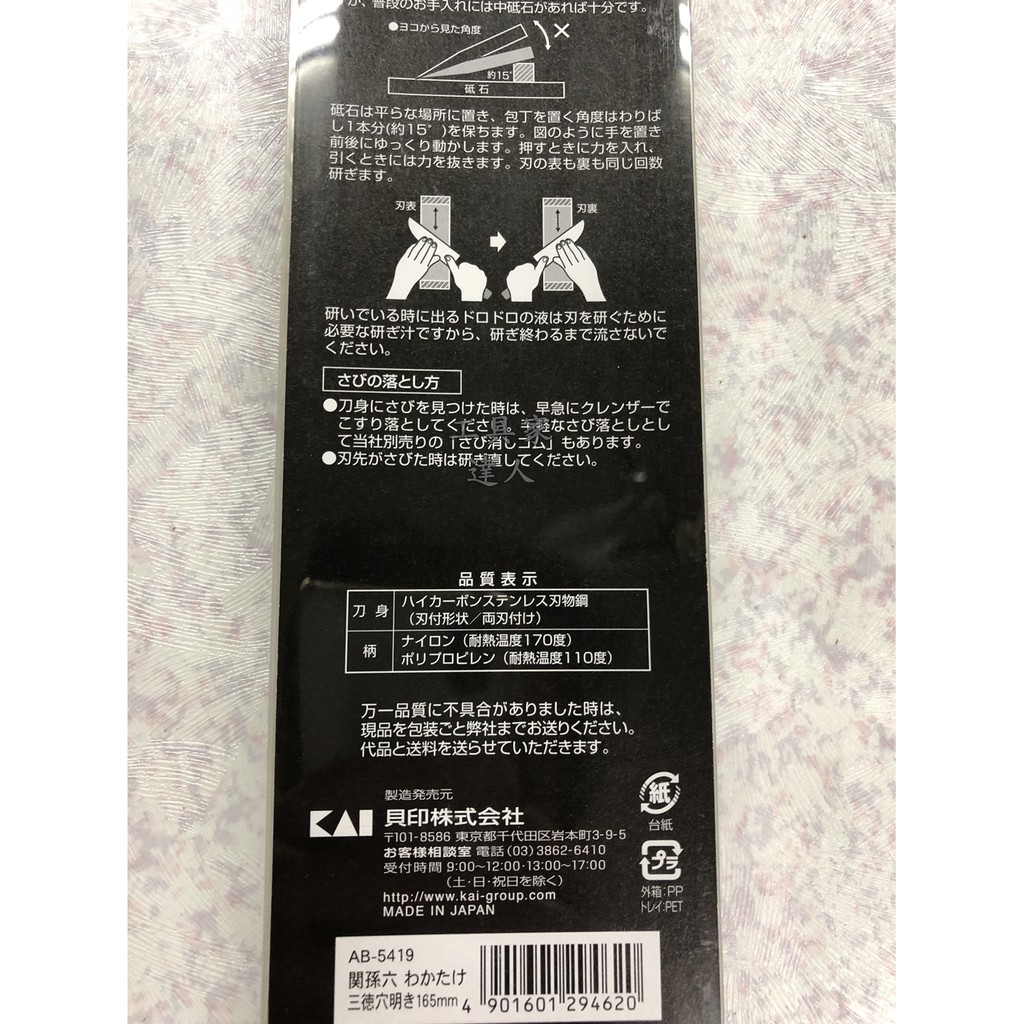「工具家達人」日本製 🇯🇵 關孫六 三德刀 家庭用刀 三德穴明刀 廚用刀 日式刀 菜刀 AB-5419