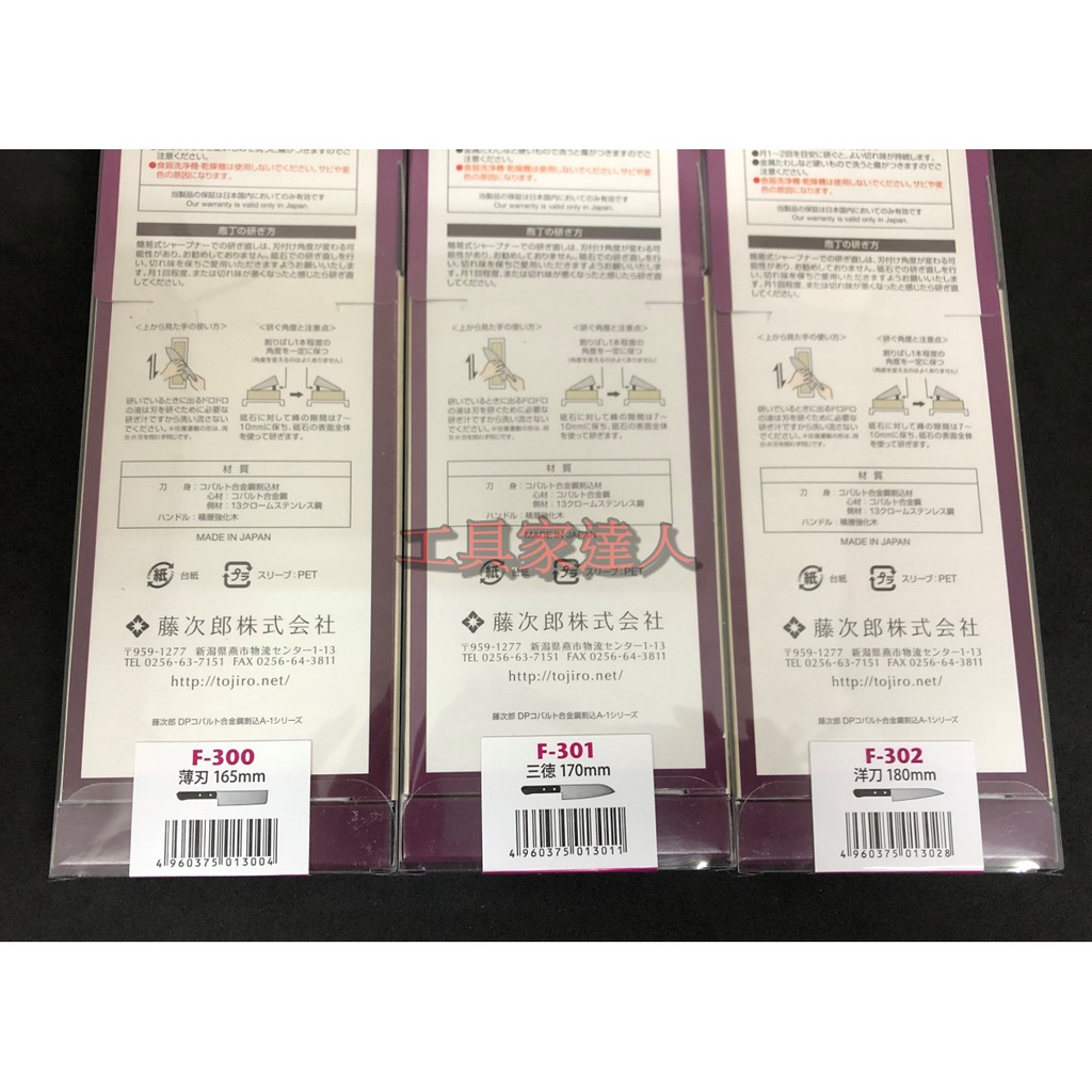 「工具家達人」 日本製 藤次郎 日本愛用三德刀 日式菜刀 F-301 F-316 菜刀 料理刀 洋刀 三德 牛刀 菜切