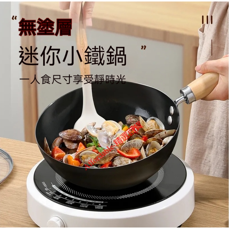 「新品推薦」🔥單人迷你小鐵鍋 傢用炒鍋 不粘鍋 無塗層平底鍋 炒菜鍋一人食電磁爐適用 RFTH