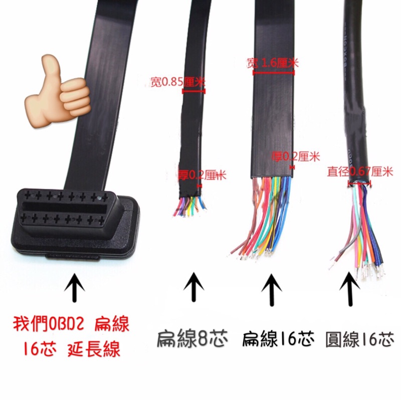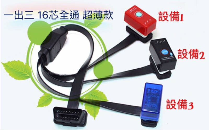 「開關版」最新款 超薄版 16 PIN OBD2 延長線 扁線 16芯全通電ㄧ分二 (1公2母)適用OBDII 轉接線