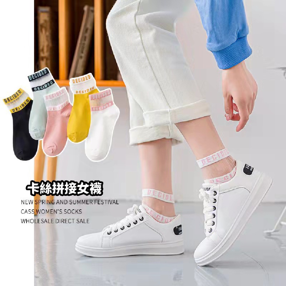 『在台現貨 快速發貨』韓版甜美字母水晶玻璃淺口 透氣透明卡絲襪