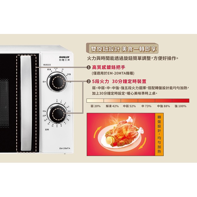 『家電批發林小姐』SANLUX台灣三洋 20公升 機械式微波爐 EM-20MTA 五段火力 30分鐘定時裝置