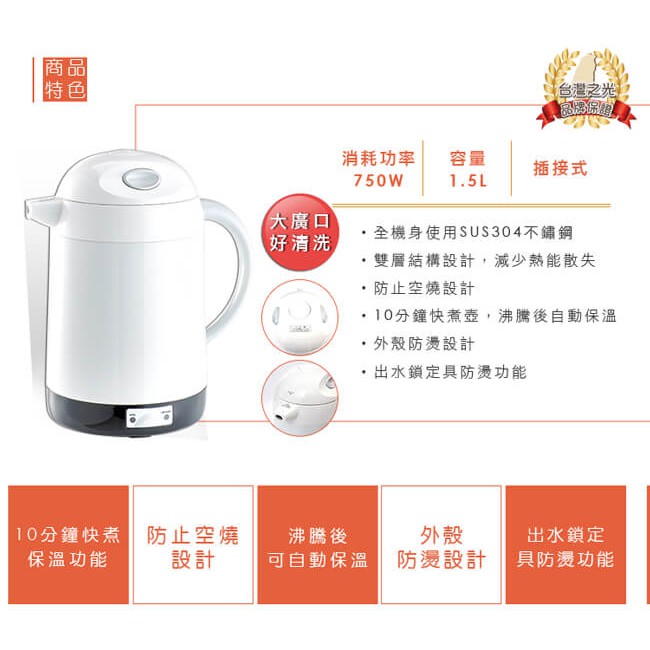 『家電批發林小姐』SPT尚朋堂 1.5公升 保溫快煮壺 SSP-1533