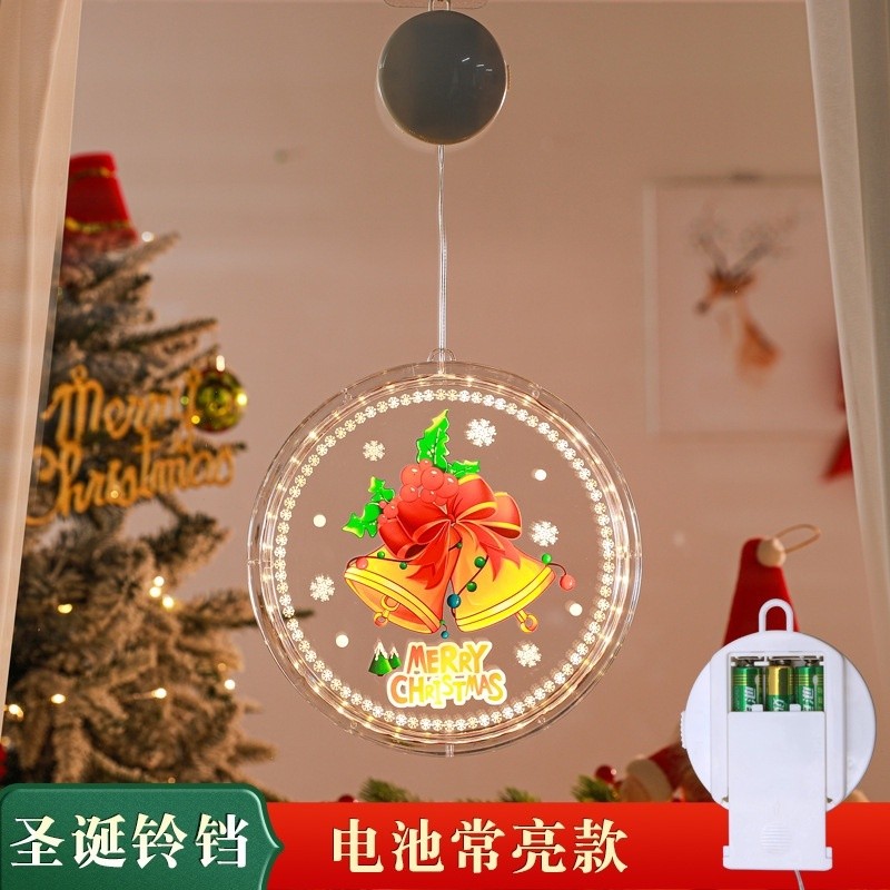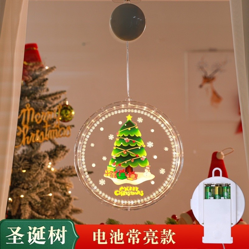 含稅出貨🔥電池供電🔥聖誕吸盤燈 彩繪圓盤挂燈 櫥窗裝飾燈 聖誕節氣氛燈 節日場景佈置 房間小夜燈 戶外防水燈 聖誕樹挂燈