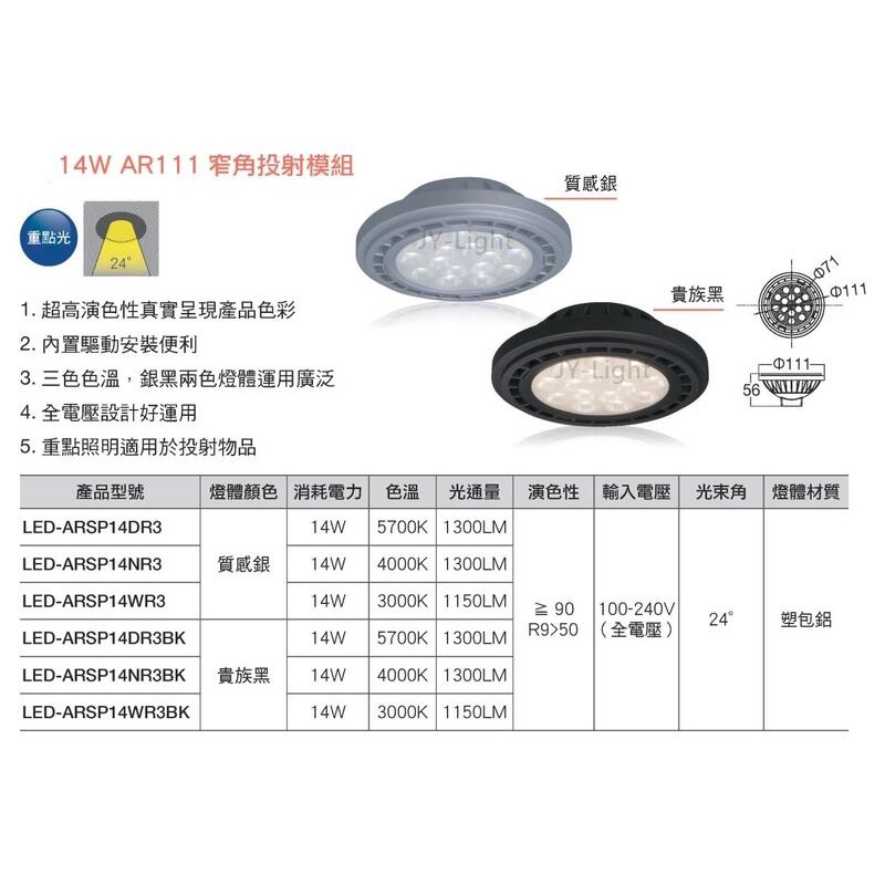 『政揚』附發票 舞光LED AR111 9W 14W 免驅 投射燈泡 軌道燈泡