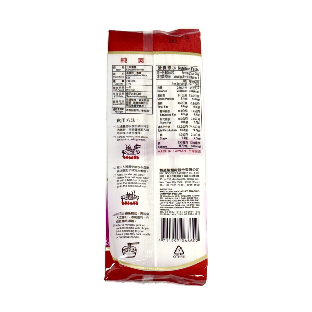 『滿額贈好禮』和益三束素麵/麵線210g (賣場滿$150出貨)