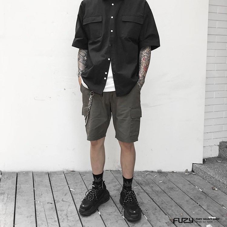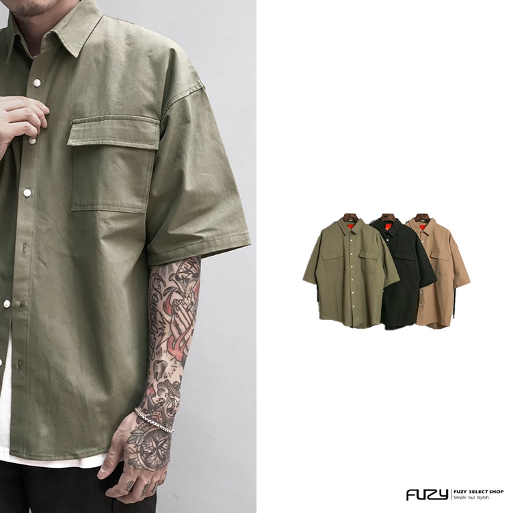 『 免運 』厚磅 工裝 雙口袋 短袖 襯衫【 FUZY 】 - S201315