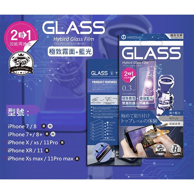 👌現貨『UNIQTOUCH』 iPhone系列 3D極致霧面藍光9H鋼化玻璃 電競必備 9H鋼化玻璃 藍光玻璃貼