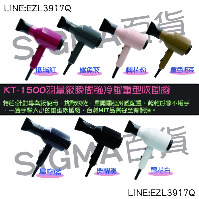 【Σ SIGMA百貨】JSQueen KT-1500羽量級1500W重型吹風機 台灣MIT品質有保障七色
