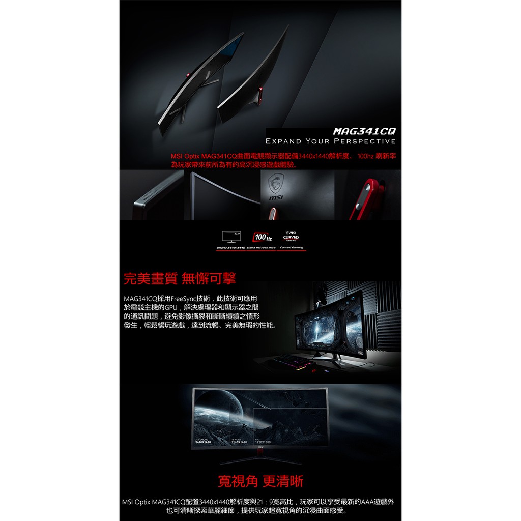 【一統電競】微星 MSI Optix MAG341CQ 34型VA曲面電競螢幕